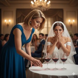 I saw Caroline—her posture perfect, her designer heels clicking on marble—glance left, then right. Her manicured fingers trembled as she fished a small, white pill from her clutch. She leaned in, lips pursed, and with a practiced flick, dropped it into my champagne. The pill dissolved instantly, vanishing into golden bubbles. She thought I was across the hall, giggling with my bridesmaids. She thought she was safe.