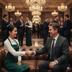 No one noticed them at first, but when they reached the edge of the circle of dancers, eyes began to turn. A waitress and the Japanese millionaire were dancing. The music continued, but conversations gradually faded, as if something didn’t fit into the perfect picture of that evening. Julia didn’t dance like a professional, but her steps were sincere.