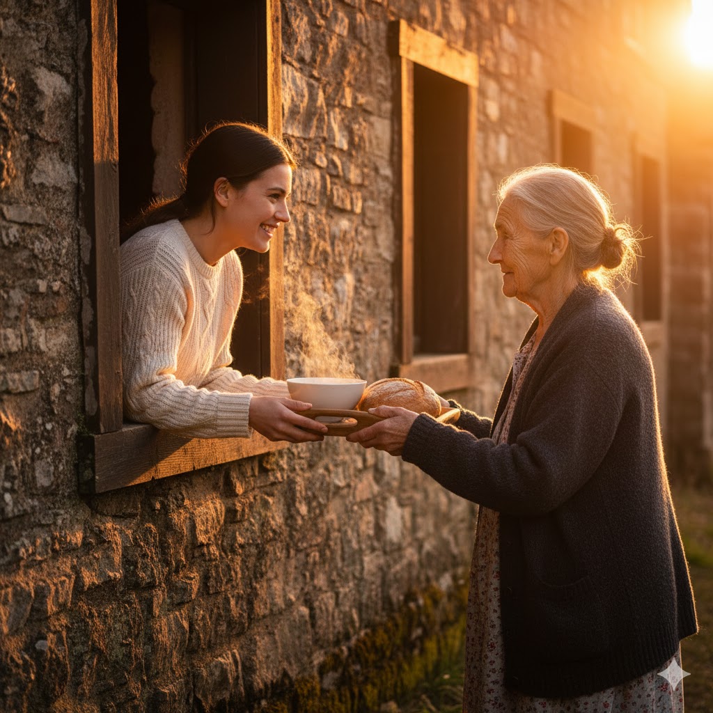 One day, returning from the market, I saw Dona Helena struggling to climb the stairs with a heavy bag. I offered to help her and, without thinking much, I brought her a bowl of soup I had prepared at home. She held the bowl with her trembling hands and smiled: