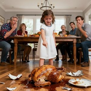 At Thanksgiving dinner, my five-year-old daughter suddenly screamed, ran to the table, and threw the entire turkey onto the floor.