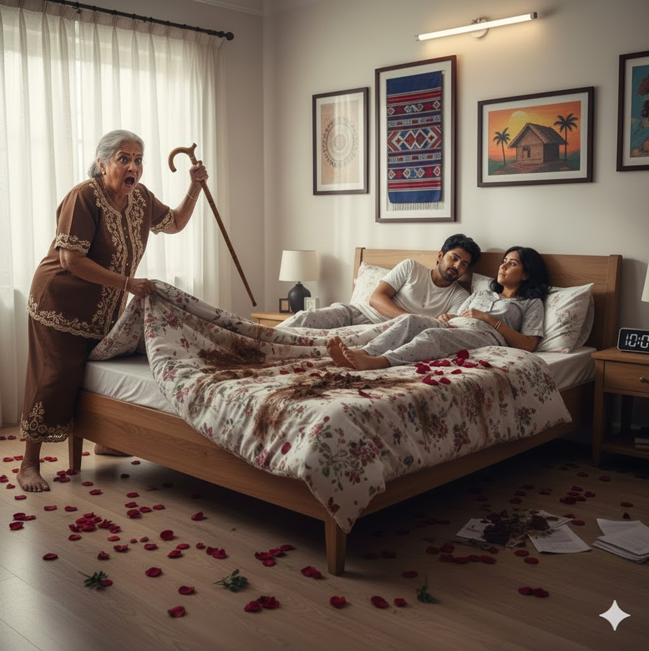 After the wedding rituals were completed, Mrs. Sharma cleaned the house thoroughly. Exhausted, she fell asleep, while her son Amit and daughter-in-law Priya had already gone to their room much earlier.