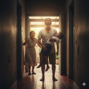 Through the crack in the door she saw how he hugged his granddaughter tightly, trembling, calling her over and over again, while the little girl lay still, her face pale. Mrs. Lata was cold, her heart pounding. Terrible thoughts crossed her mind: an old man alone at home with his granddaughter, and now she was unconscious in his arms—what a strange sight!