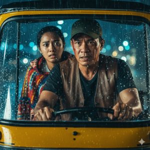 The rain beat on the windshield of the old yellow taxi as Pablo adjusted the driver’s cap he had bought that morning.