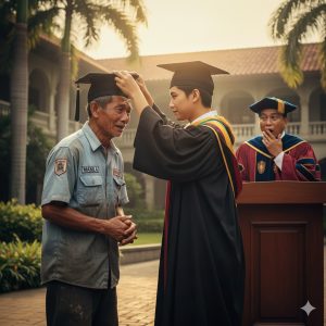 I turned around: Tatay Ben smiled—a gentle smile but his eyes were red. At that moment, I understood: in his entire life, he had never asked me to repay him. Today, he was recognized—not because of me, but because of what he had silently planted for 25 years.