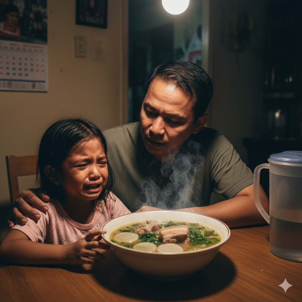 Sa mismong sandaling iyon, gumuho ang mukha niya. Kumapit siya sa gilid ng mesa at umiyak nang buong lakas—hindi iyak ng batang pagod o nag-iinarte, kundi iyak na malalim at matagal nang kinikimkim.