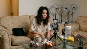 Lumapit siya sa ring light. Tinignan niya ang screen.