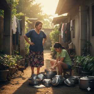 His words were like a knife piercing my heart. “A few bowls”? It wasn’t a few bowls. It was a pile of rusty pots and pans, stacked plates, dust and mold from years of use. I washed them until my hands were sore, but she considered it a small matter.