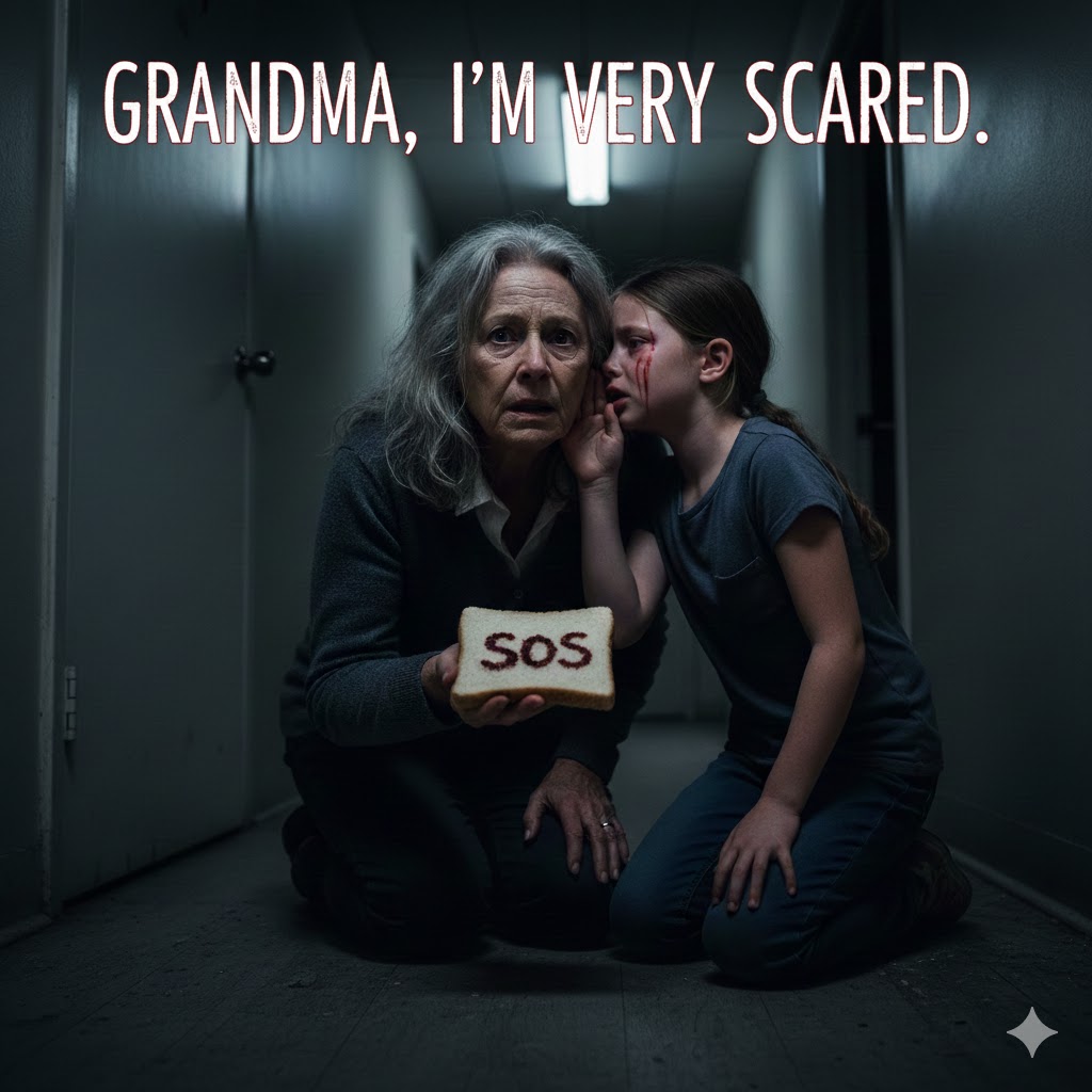 During family dinner, my little granddaughter smiled and handed me a piece of bread. I almost laughed—until I noticed the tiny streak of ketchup… forming three letters: SOS. A chill ran down my spine. I pretended to fumble, dropped the bread onto my clothes, and said, “Let’s go clean this up, sweetheart.” Once the door closed, the child trembled, gripping my hand and whispering, “Grandma… I just saved you. They don’t want you to leave here.” I froze on the spot.