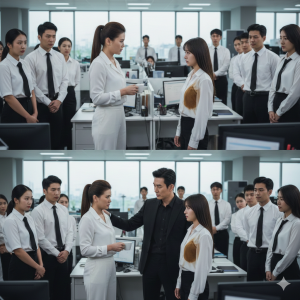 A strange tension spread across the office as Director Adrian Mercado gently guided Lia toward his office. People exchanged looks — confused, stunned, whispering behind hands.