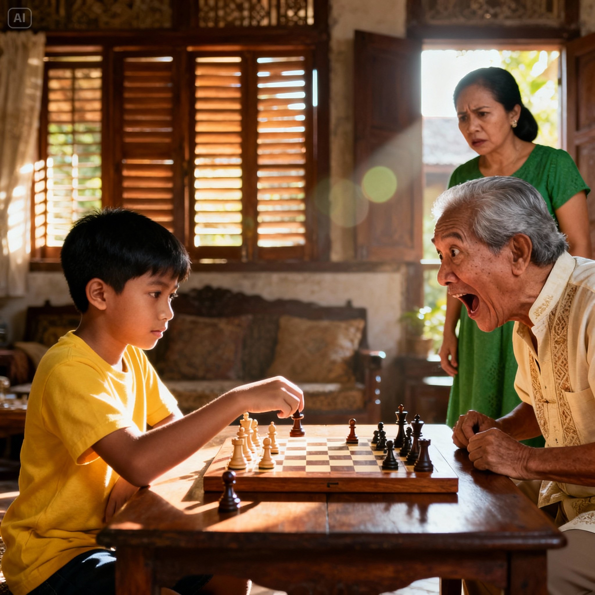 Nagkibit-balikat ang bata, sabay ngiti ng payapa. “Sige po, sir.” Umupo siya nang tuwid, pinisil ang knight na parang kaklase niya sa larong patintero. Tahimik ang buong sala—maliban sa tik-tak ng chess clock na parang pulso ng kwentong malapit nang maiba ang daloy.