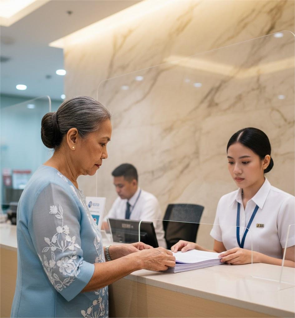 The teller, Ms. Nicole, smiled as she took the passbook.