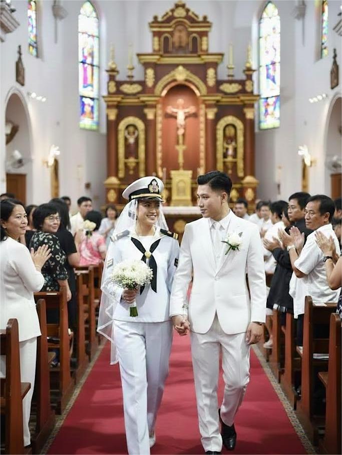 I didn’t say anything. Not right away. I kept walking, each step steady, the heel tapping softly on the wooden floor with a quiet authority. I stopped where a bride usually stands: sweet, radiant, graceful. I was neither graceful nor radiant. I stood straight, firm, supported by my uniform.