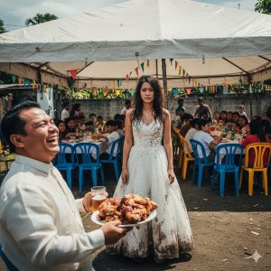 Pumasok si Vanessa. Ang daming tao! Ang mga bisita ay nagtatawanan. Ang mga ninong ay nag-iinuman ng Lambanog.