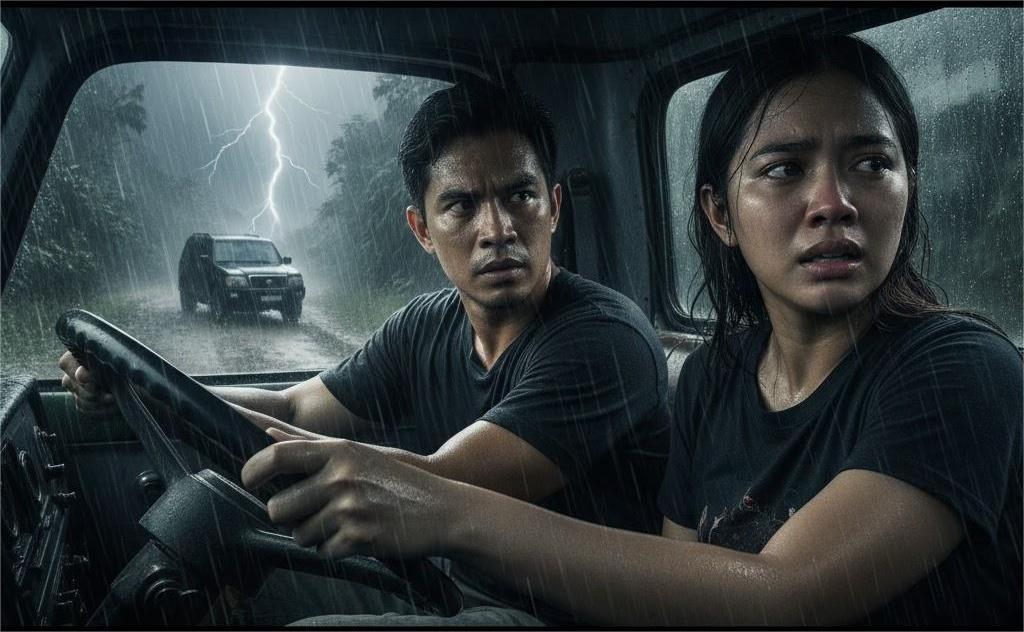 The rain fell hard as they drove along the winding road descending toward Ligaya Drive. Lightning fractured the sky above Taal Volcano, and the windshield wipers struggled to keep up.