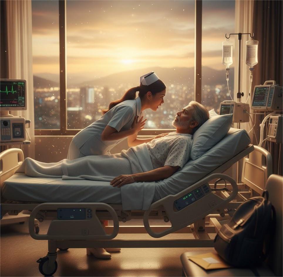 One afternoon, after checking the IV, Ananya was about to turn away when Mr. Malhotra’s hand reached out to her wrist. He looked at her calmly and said weakly: