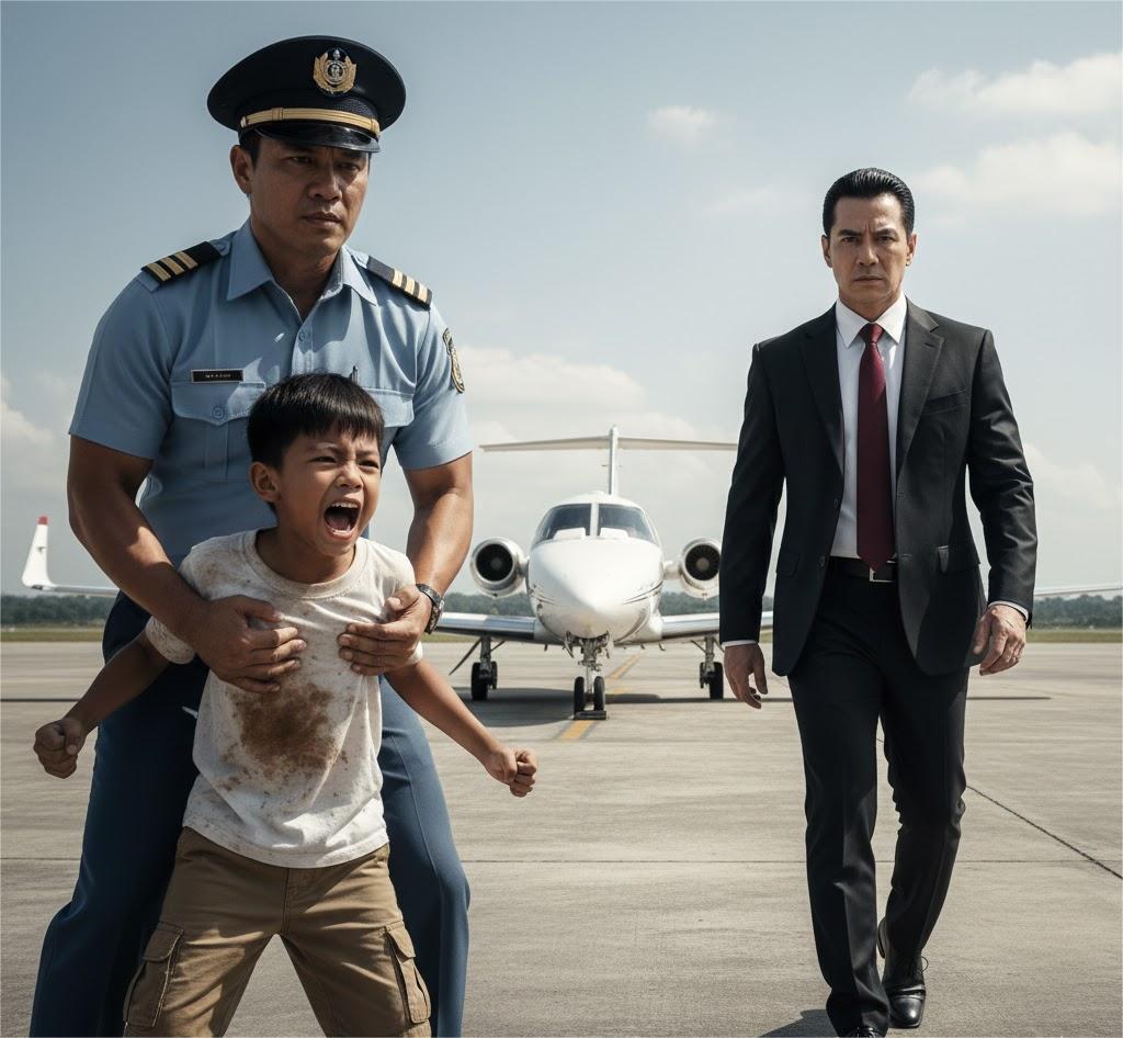 As he approached the plane, a loud voice cut through the fresh air. “Don’t get on the plane! It’s about to explode!” Everyone froze. Next to the metal fence was a young boy—no older than twelve—wearing a dirty sweatshirt, ripped jeans, and holey sneakers. His hair was messy, his cheeks were streaked with dirt, but his eyes were shining, wide with urgency.