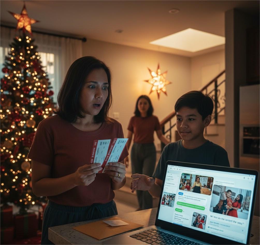 I found two plane tickets in my husband’s coat. My thirteen-year-old son glanced at them and said casually, “Mom, those tickets are for Dad and Aunt Vanessa.” I froze. I asked him how he knew. He just smiled… the kind of smile that made my heart tighten. “I have a surprise for you, Mom.” And when he opened his laptop… that surprise made me gasp for air, my knees nearly giving out…