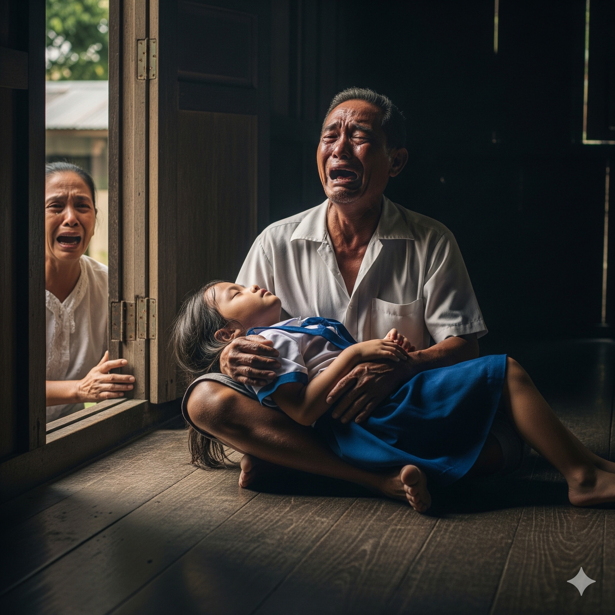 Through the crack in the door, she saw him holding his granddaughter tightly, trembling and continuing to call, while Ana was still lying there, her face pale. Aling Lani was shocked, her heart pounding. Horrifying thoughts flashed through her mind: an old man alone at home with his granddaughter, now the granddaughter was unconscious in his arms… How unusual!