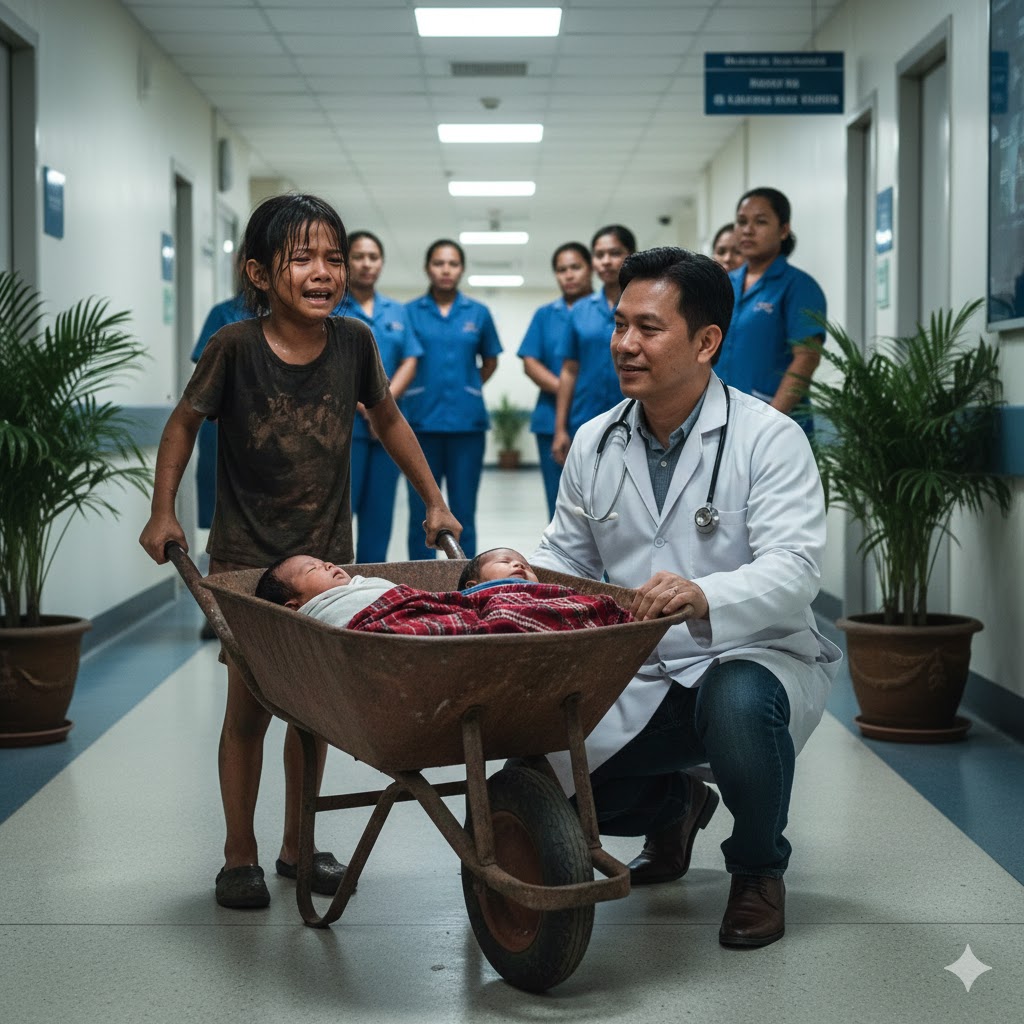 A 7-year-old, trembling from head to toe, her clothes smeared with dirt, struggled to push a rusty stroller through the ER doors. Inside lay her twin siblings, barely over a year old.