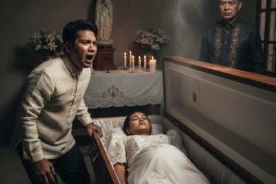 The air inside the crematorium was heavy with pain. Mark Lewis doesn’t move, his trembling hands clinging to the edge of the coffin. Inside lay his wife, Emily, her pale face frozen in eternal silence. She was seven months pregnant when the tragedy struck: a sudden car accident on a wet highway that instantly took her life. At least that’s what everyone believes.