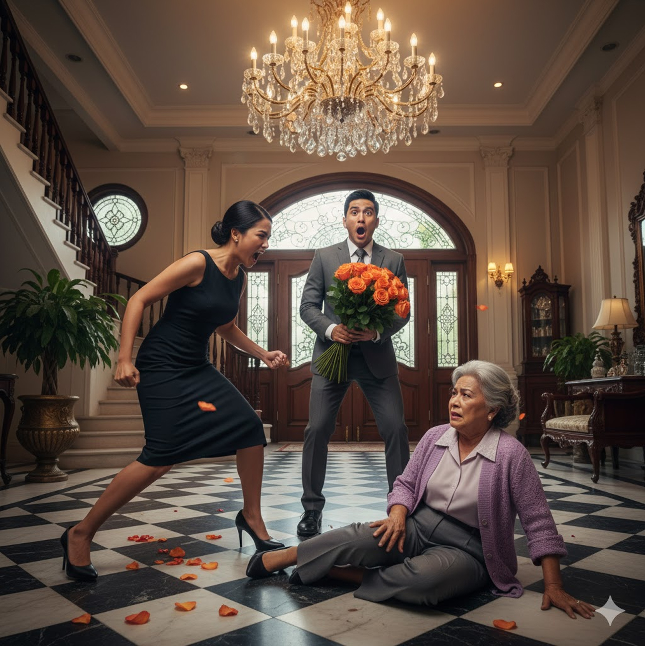 He wanted to surprise her with a romantic gesture, arriving early to see her smile at the unexpected gift. But when Rafael opened the main door of the mansion, the bouquet slipped from his hands and fell to the marble floor, scattering petals and water at his feet. What he saw next destroyed not only the surprise he had planned but also the future he had imagined.