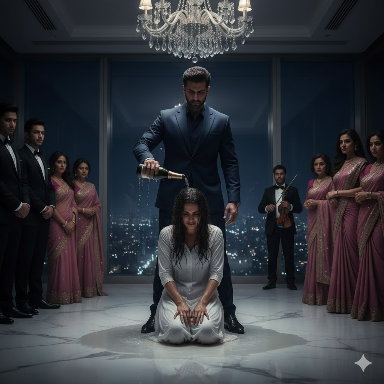 Arjun’s face showed nothing. He had just poured champagne on a young woman now being celebrated across the city. Phones captured the entire humiliating scene, and within hours, the video went viral. Angry comments poured in: