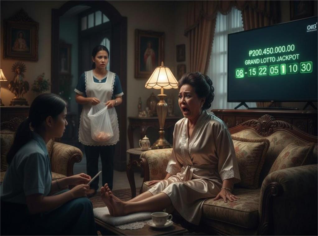 Doña Miranda was watching TV while getting a pedicure when the Grand Lotto results were announced. The jackpot prize: ₱200,450,000.00.