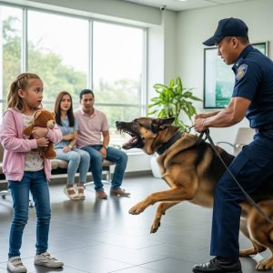 “What are you doing?!” the mother shouted, sharply protecting her daughter and pulling her closer to her. “Take the dog away!”