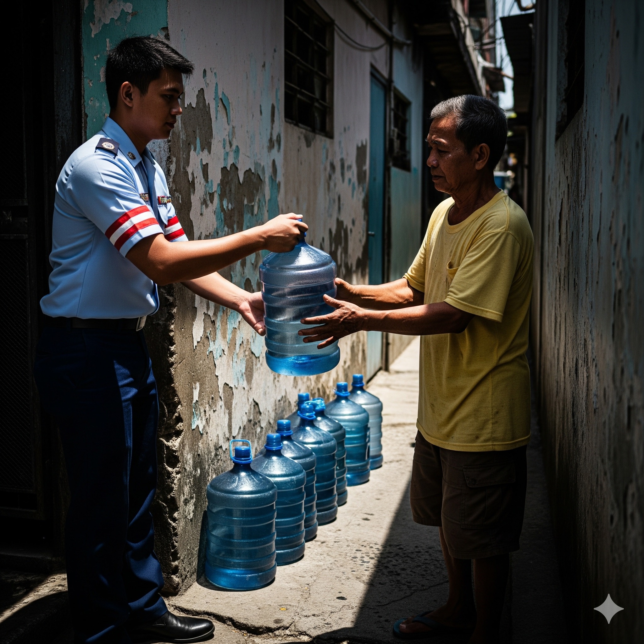 “I’m old, I can’t help it. I just think that the poor people around here lack clean water. I ordered a lot of water, and every day I ask the children in the neighborhood to go and get water and distribute it. Those in need get free drinking water.