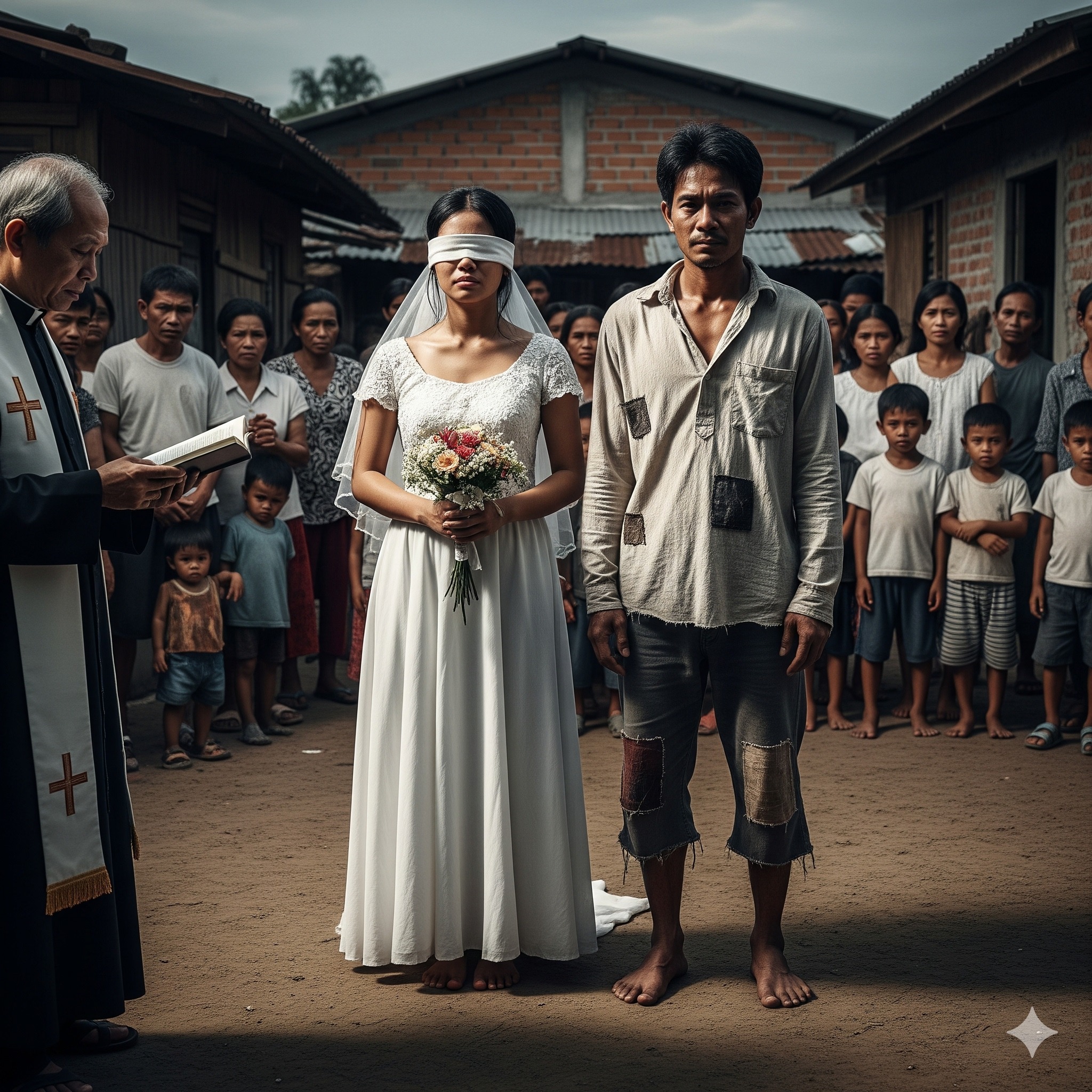 The next day, she was married in a small, hurried ceremony. Of course, no one had really seen her face — and no one had dared to describe it to her. Her father pushed her closer to the man and told her to hold his arm. She followed like a ghost trapped in her own body. The people laughed and whispered, “The blind woman and the beggar.”