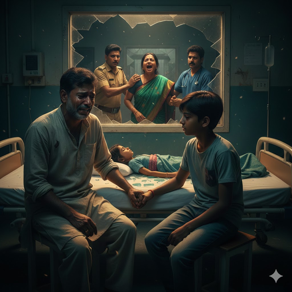 अस्पताल की खिड़की हज़ार टुकड़ों में बिखर गई टूटे हुए ढांचे से एक छोटा लड़का...