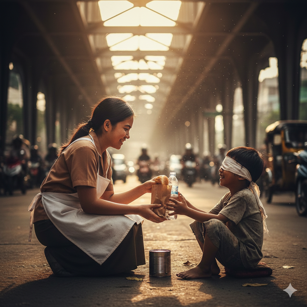 UNANG SAHOD KO SA AKING BAGONG TRABAHO—PERO IBINIGAY KO ANG KALAHATI NITO SA ISANG BATANG BULAG SA TABI NG TULAY