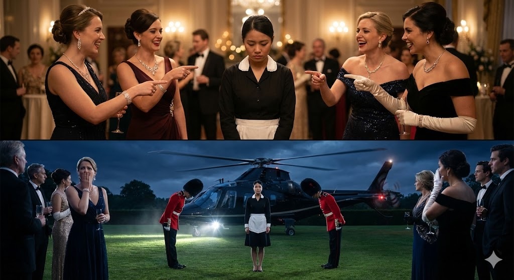 SHE WAS INVITED TO THE REUNION JUST TO BE HUMILIATED — CALLED A “MAID” AND GIVEN A MOCK FAREWELL — BUT EVERYTHING STOPPED WHEN A HELICOPTER LANDED TO PICK UP THE REAL PRINCESS.