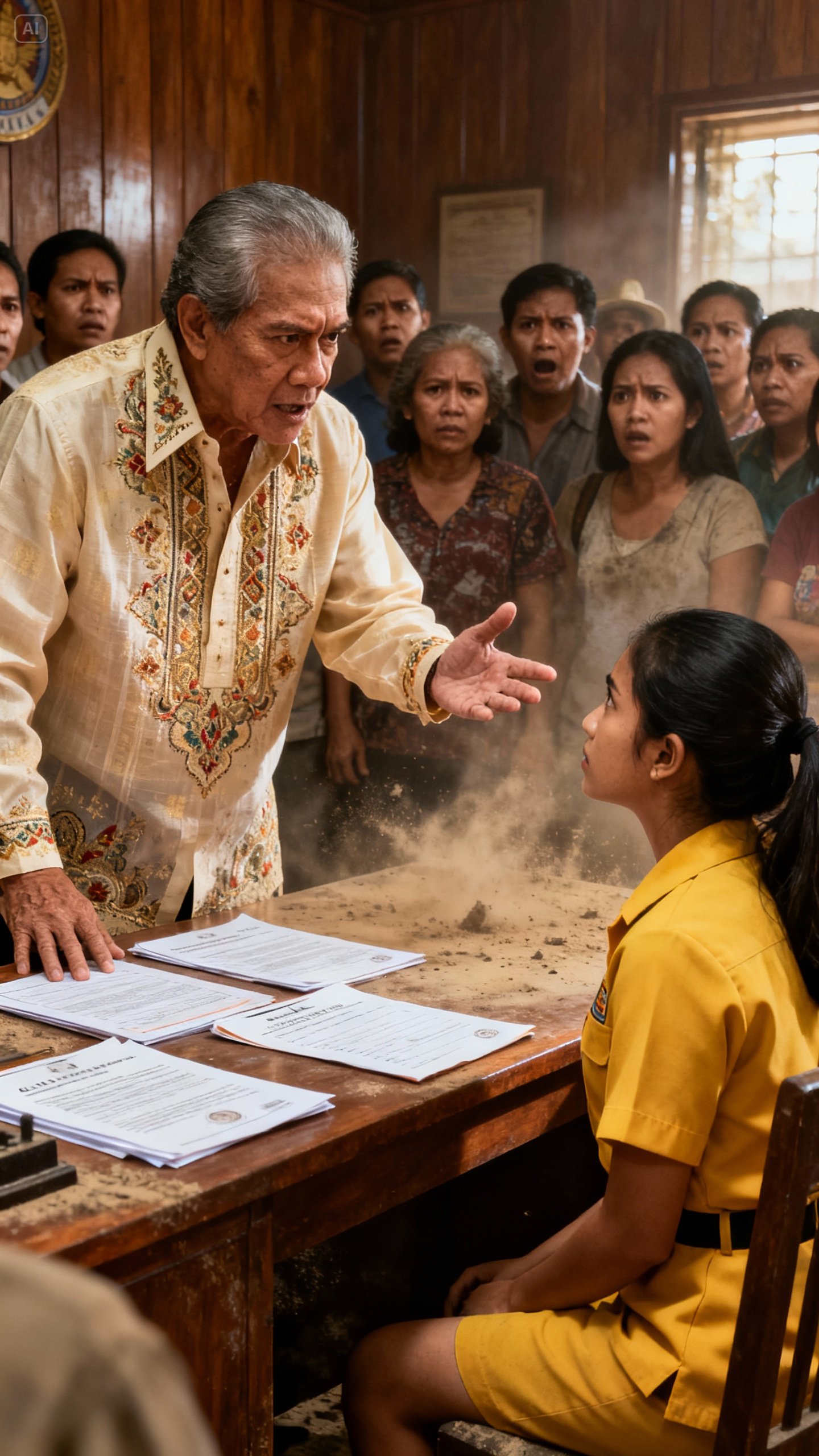 Sa loob ng maluwang na sala na may makakapal na kurtina at gintong lampshade, mahigpit...