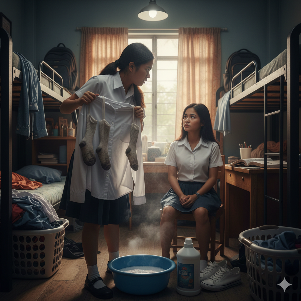 NILAGAY KO ANG APAT NA MABAHONG MEDYAS KO SA UNIFORM NG KAROOMMATE KO….. Bilang college...