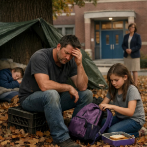 When I noticed Lily hiding her lunch again, I quietly followed her — until she whispered, “Daddy… I brought food,” to someone living behind our school. The sight made my heart stop. I steadied myself, grabbed my phone… And what happened next changed everything.