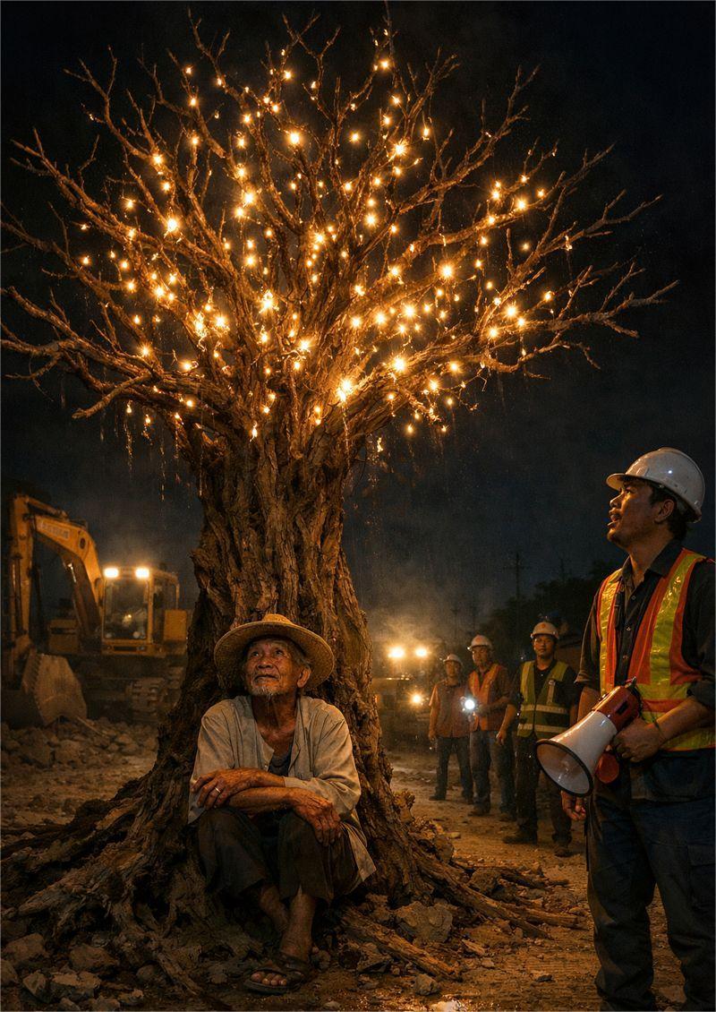 NAIINIS NA ANG MGA ENGINEER DAHIL AYAW PUMAYAG NG MATANDA NA PUTULIN ANG ISANG “TUYOT NA PUNO” SA GITNA NG ROAD WIDENING PROJECT PERO NATIGILAN SILA SA GANDA NANG BIGLANG UMILAW ITO SA GABI